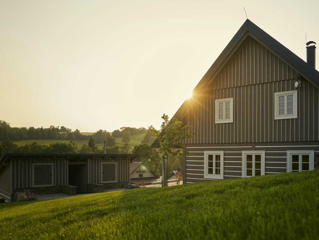 Každá chalupa nabízí komfortní ubytování až pro 14 osob, plně vybavenou kuchyň, útulný obývací prostor, krbová kamna a saunu. Venku najdete venkovní sprchu, dětské hřiště, prostor pro společné aktivity a ohniště. Na terase každého domu je k dispozici vlastní gril a posezení. Obě chalupy mají samostatně uzamykatelné lyžárny/kolárny a vyhrazený prostor pro sušení oblečení a vybavení. Parkování je zajištěno přímo u objektu a je vybaveno dvěma nabíjecími stanicemi pro elektromobily.